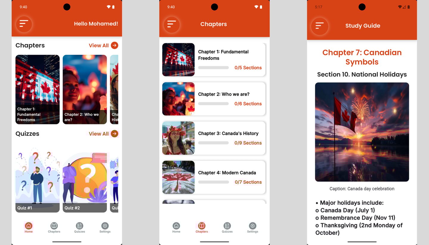 Led and executed the full product lifecycle for CanaPrep, a Minimum Viable Product (MVP) mobile application designed to simplify and prepare candidates for the Canadian Citizenship exam. This system digitizes study materials, manages preparation progress, and streamlines the path to citizenship, demonstrating end-to-end proficiency from idea conceptualization to Google Play Store launch.